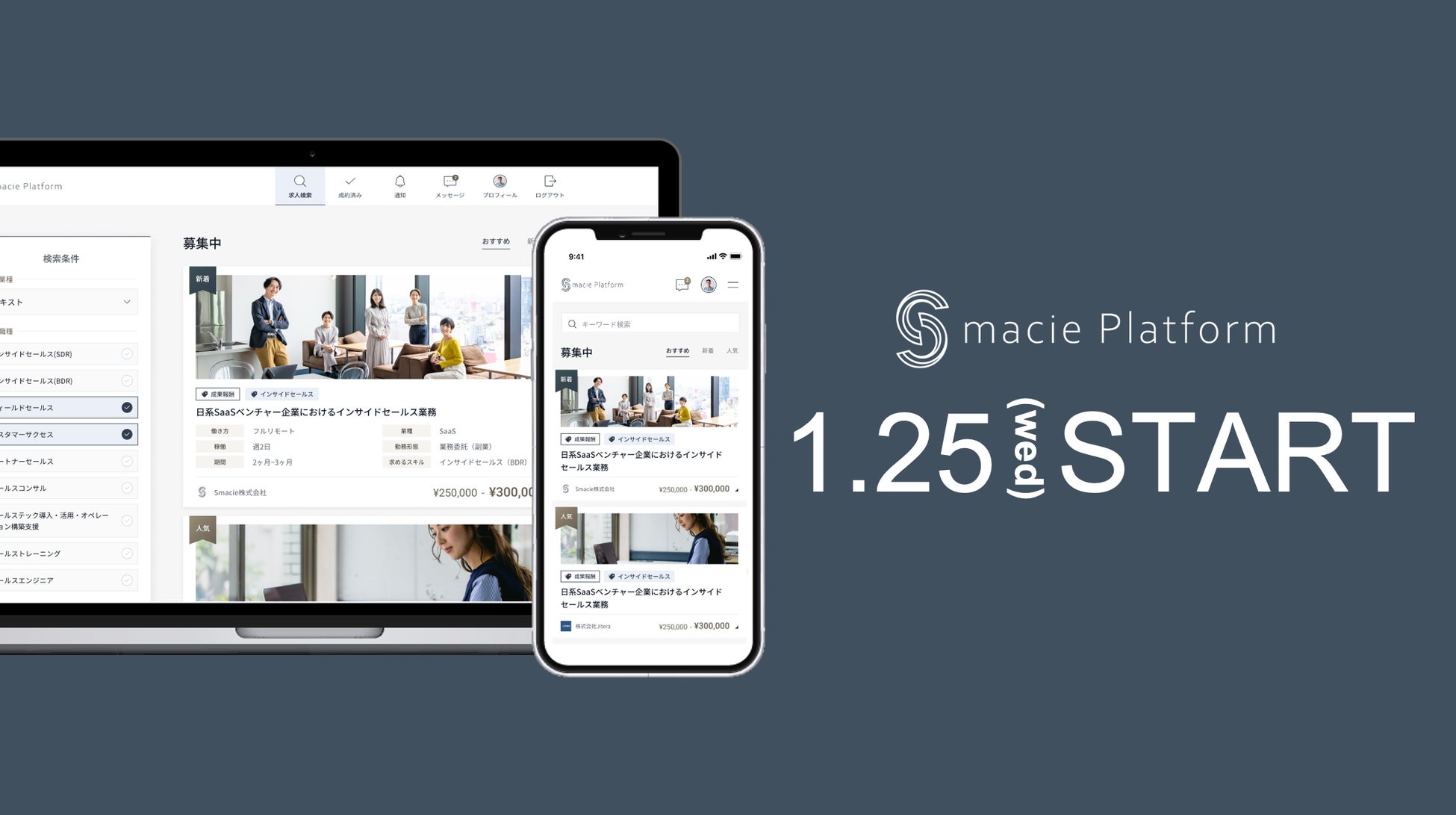 ITセールスとIT企業をマッチングする仲介型プラットフォーム「Smacie Platform」の開発・運営有料職業紹介事業許可番号:13-ユ-314878